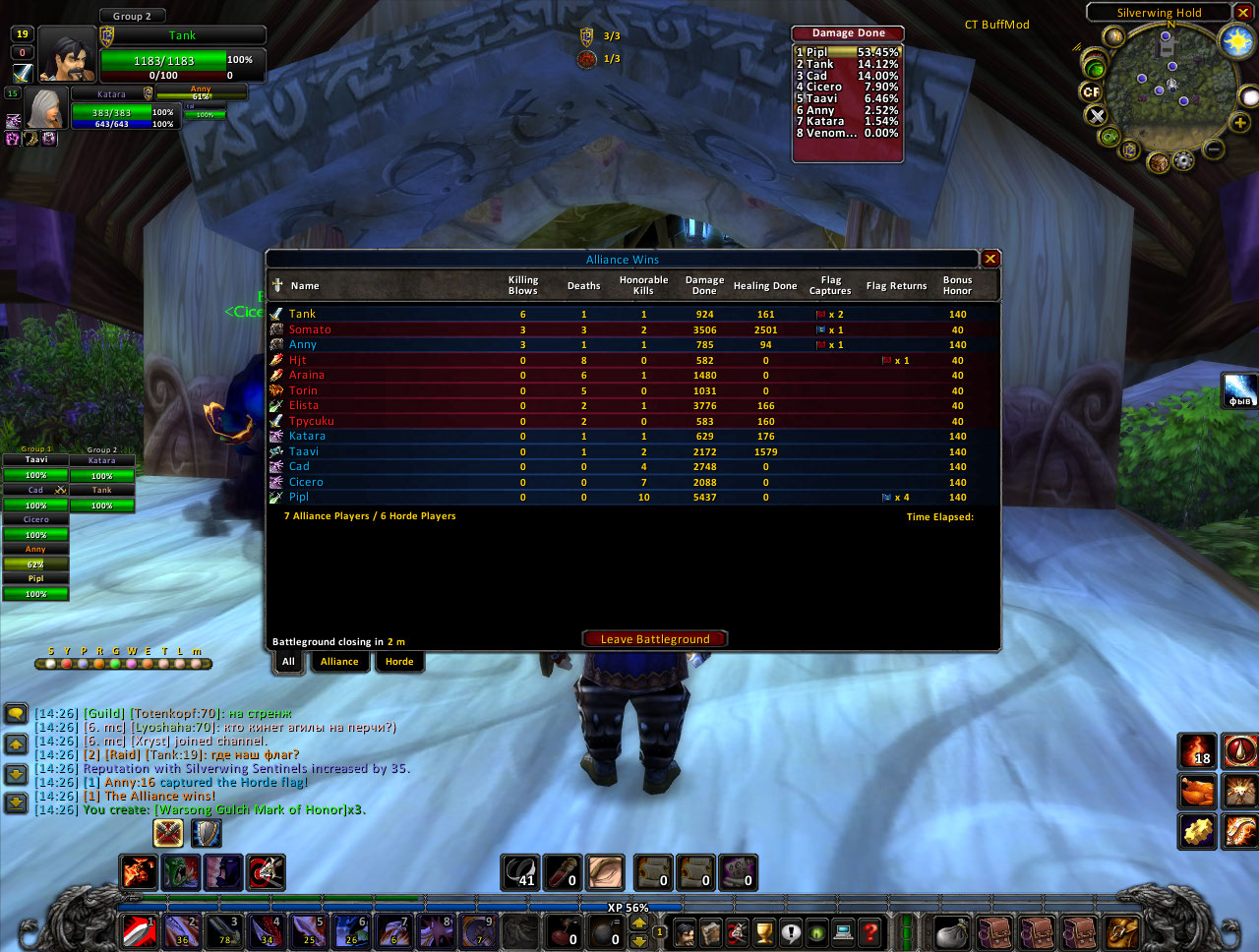 | Рысюль, знаешь, как классно)) Я встречала наших с флагом в стелсе, в щит, хилила, они дальше бегут ,я сзади на урку дотты)) Вот, до миндфлая бы дойти, тормозить можно мощно еще)) Но, это ж надо дальше кач, а не хочеццо. Команда еще толковая попалась. Без вариантов обыгрывали.